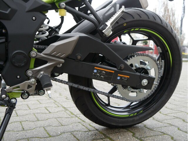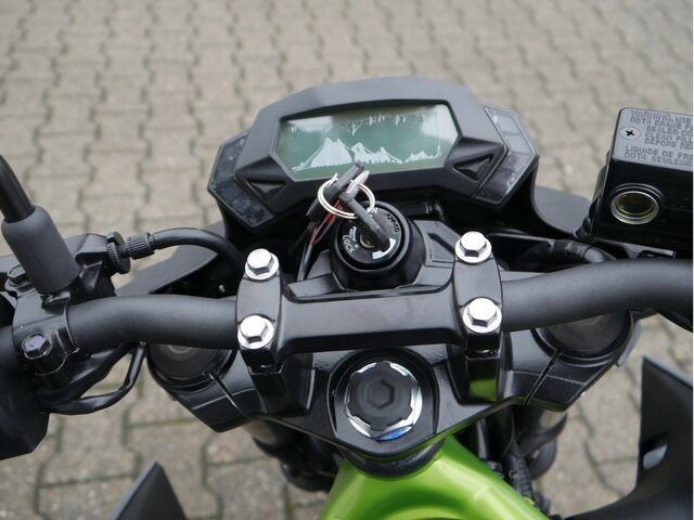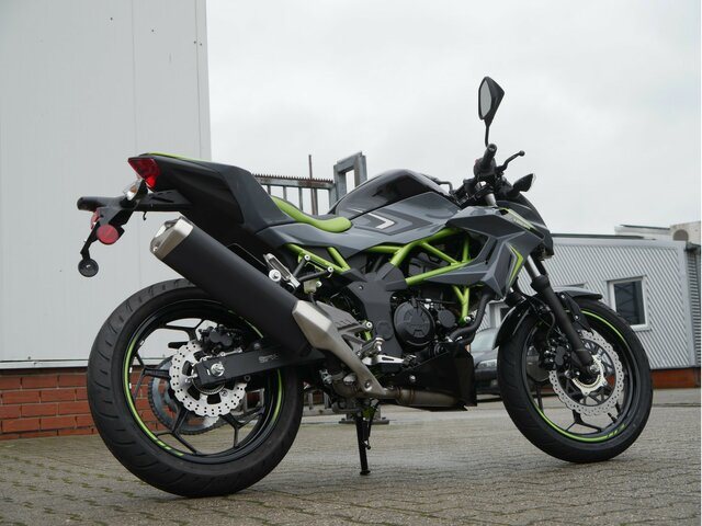 Mit Kawasakis einzigartiger Sugomi-Designphilosophie, die sofort ins Auge fällt, präsentiert sich das kleinste Mitglied der Z-Familie. Auffallen und ein starkes Naked-Bike-Statement setzen endash genau dafür ist sie da. Der freiliegende Gitterrohrrahmen verbindet sich mit der minimalistischen, aggressiven Z-Verkleidung und lädt zu sportlicher Fahrweise ein. Der 15-PS-Motor (11 kW) ist sowohl einsteigerfreundlich als auch so sportlich, wie man es von Kawasaki erwartet. Die Z125 kann mit dem A1-Führerschein oder mit dem Autoführerschein ab 25 Jahren (B196) gefahren werden und bietet ideale Voraussetzungen für Führerschein-Neulinge.